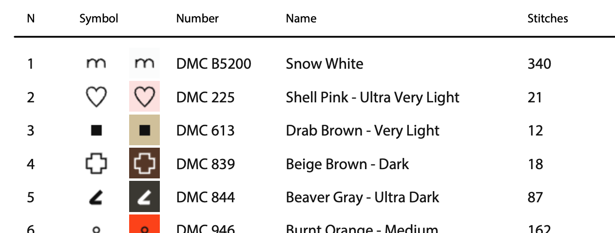 Size, with 16 count Aida fabric: 12.7 cm. wide, 12.7 cm. high