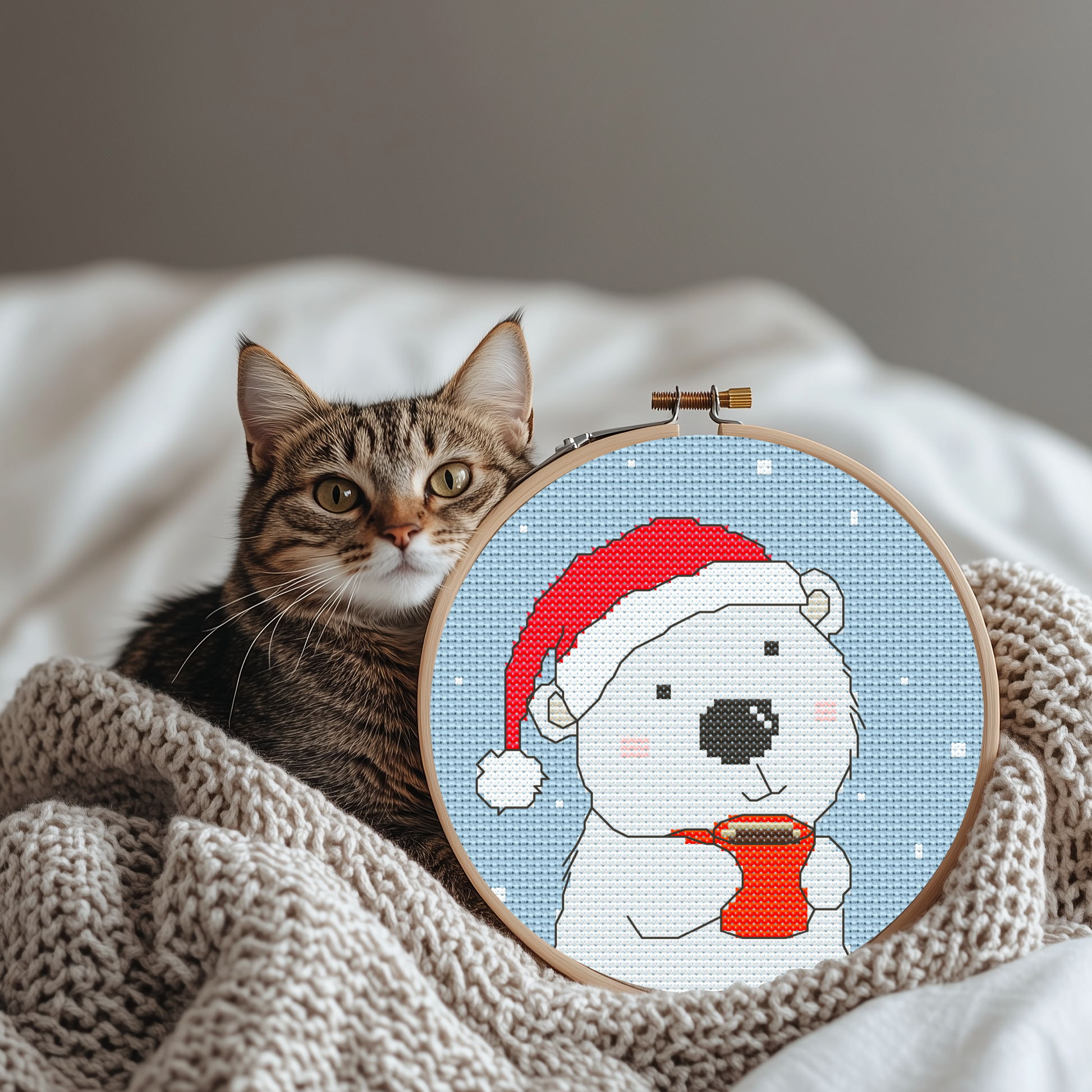 Christmas Bear and Coffee Cross Stitch Pattern - PDF Pattern