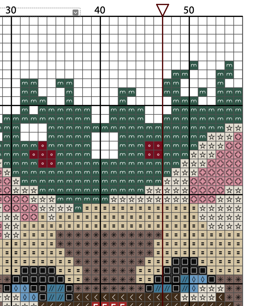 Size, with 18 count Aida fabric: 13.34 cm. wide, 10.48 cm. high